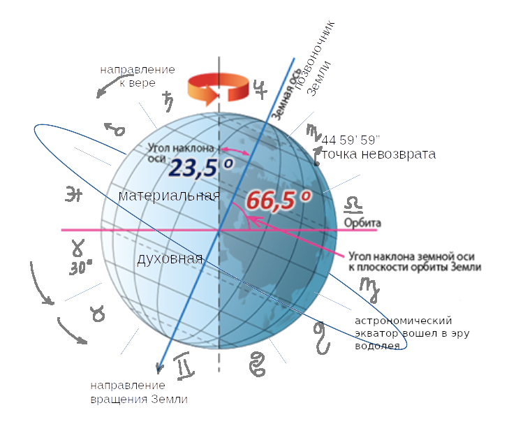 На рисунке видно, как астрономичесий (небесный) экватор (Небе́сный эква́тор — большой круг небесной сферы, плоскость которого перпендикулярна оси мира) , сместился в сторону Водолея k ,как видно в прошлый раз урок откровения, прозренияя не усвоен. Пришла пора его выучить сейчас.